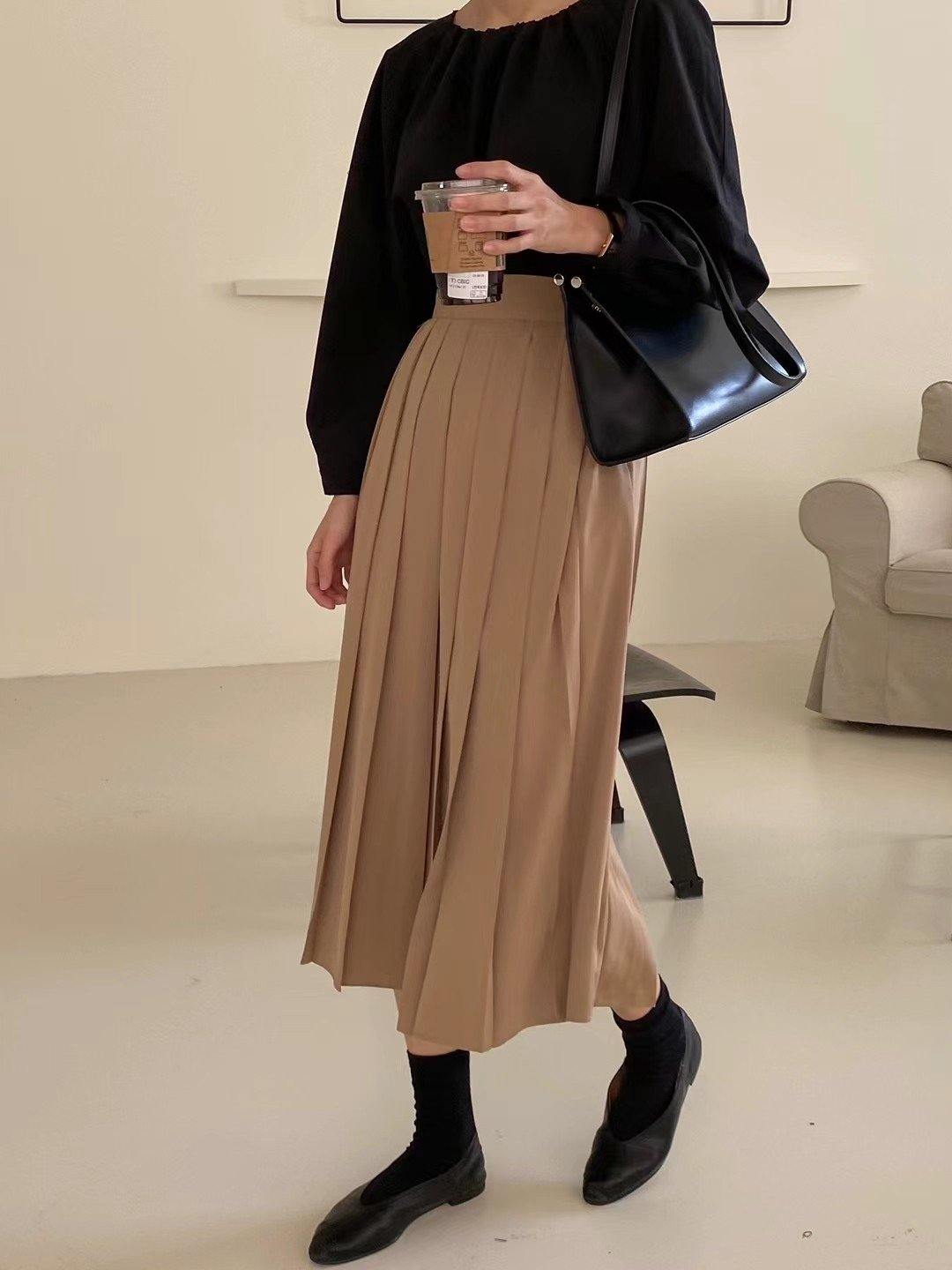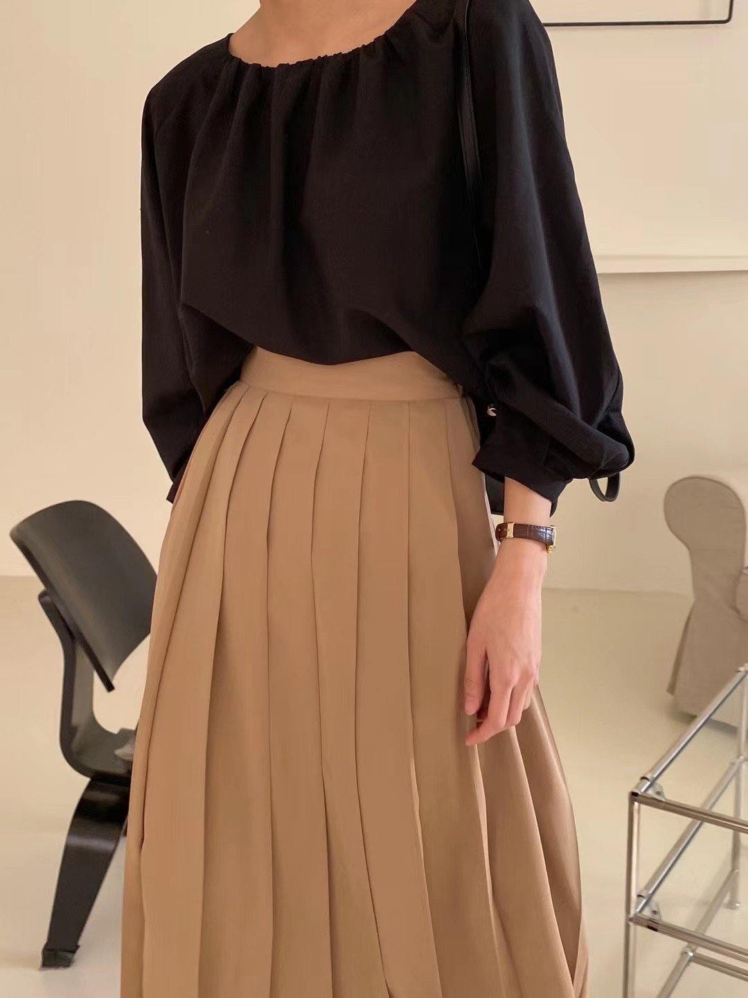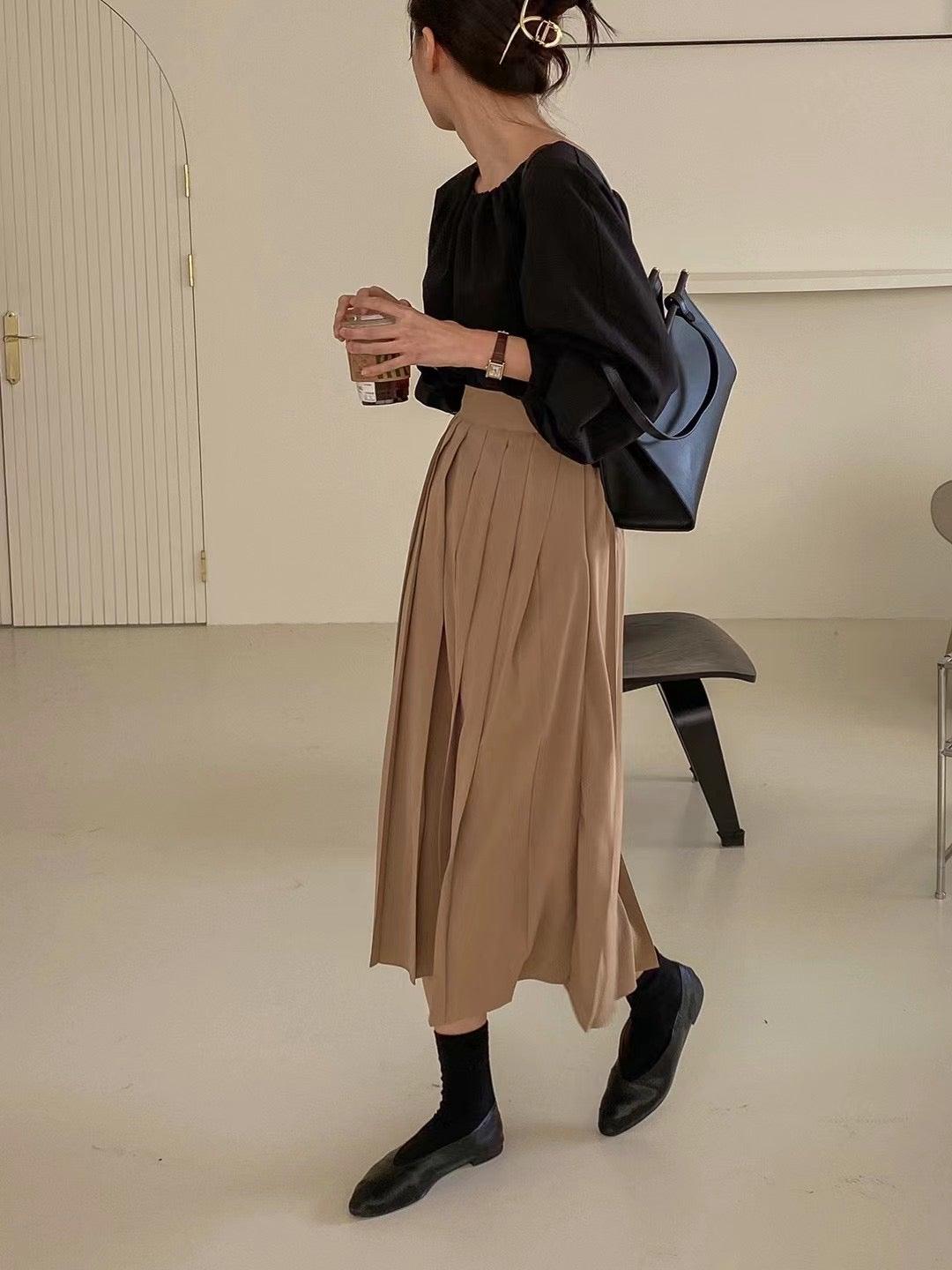 高貴氣質百摺雪紡長裙 <KR>
