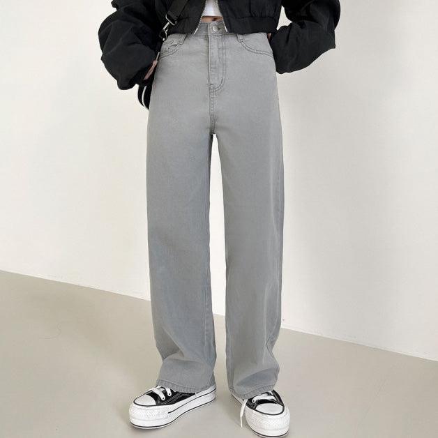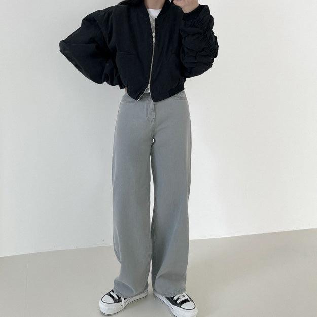 莫蘭迪高級灰黑系牛仔闊褲<KR>