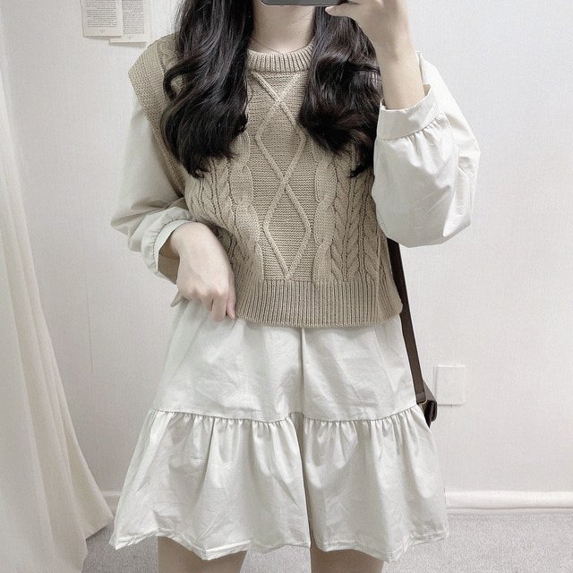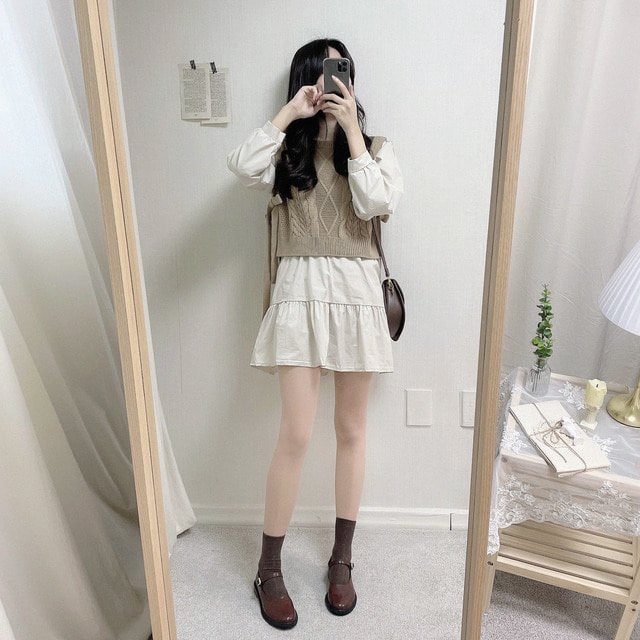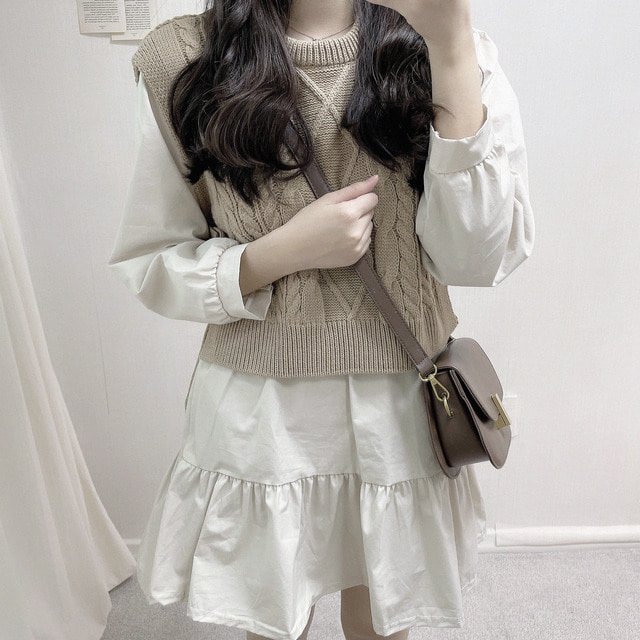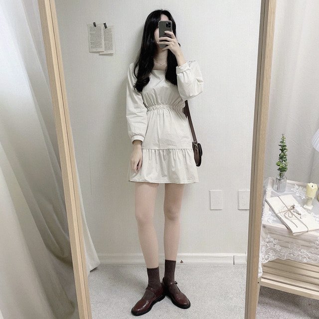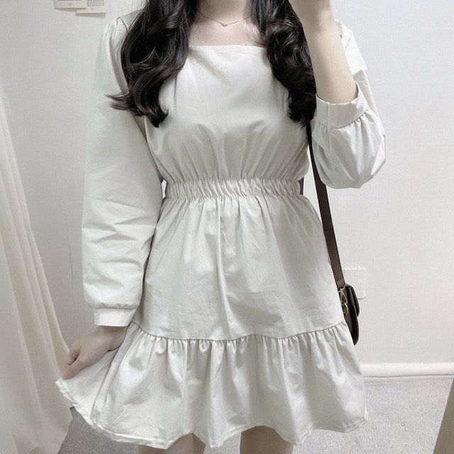 【現貨】骨感方領棉麻連衣裙 <KR>