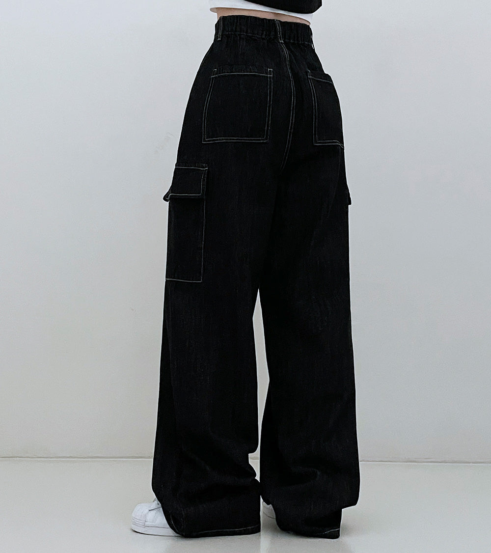 【特價❗️3種長度/內橡筋】原色明線闊腿工裝牛仔褲(S-2XL)