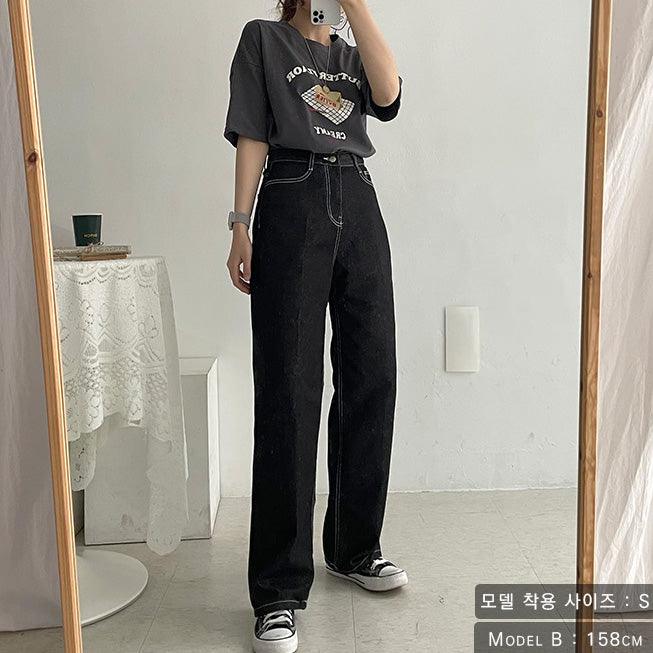 【現貨黑M】明線闊腳牛仔褲 <KR> (S-L)