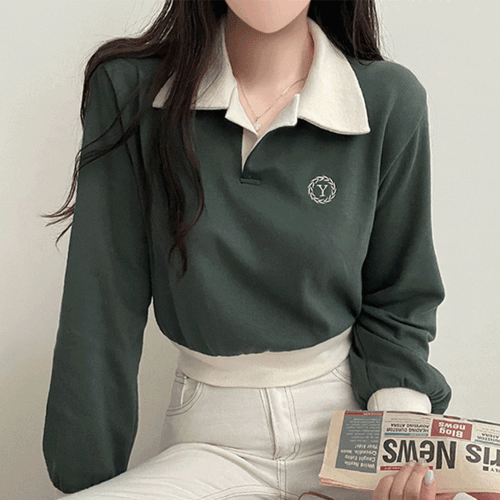 【現貨灰】🍓Y刺繡拼色開領短衛衣