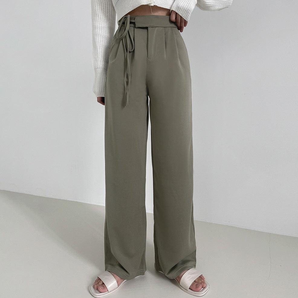側綁帶垂感西裝闊褲(S-L)