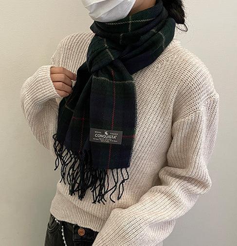 🥀【韓國製】WOOL TOUCH格紋針織流蘇頸巾(11color)