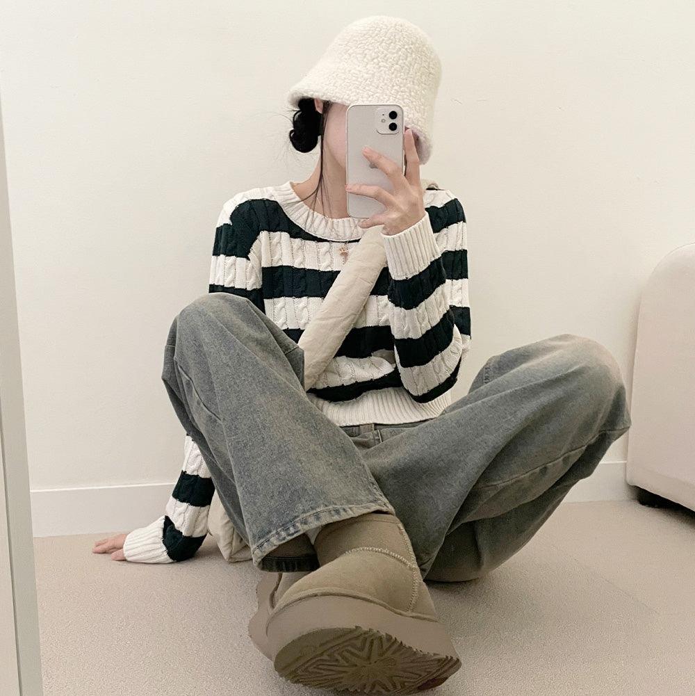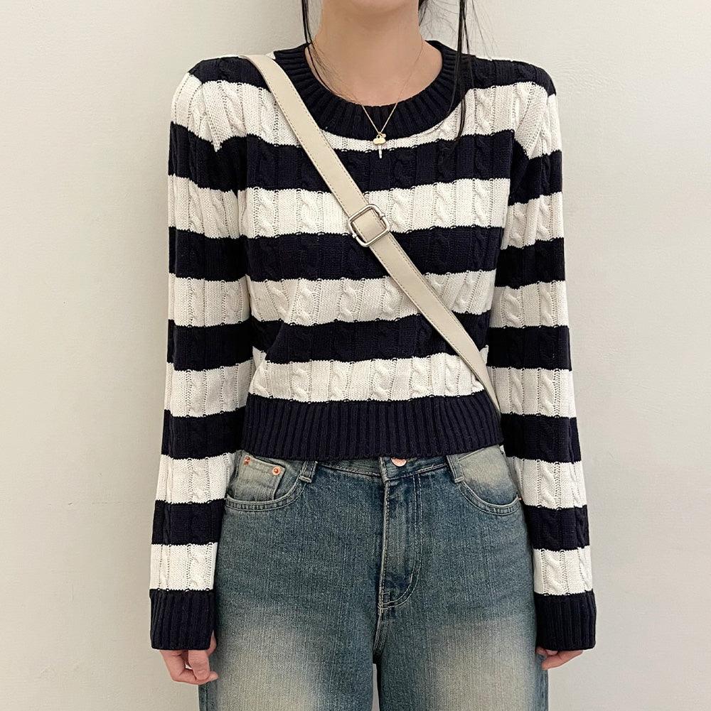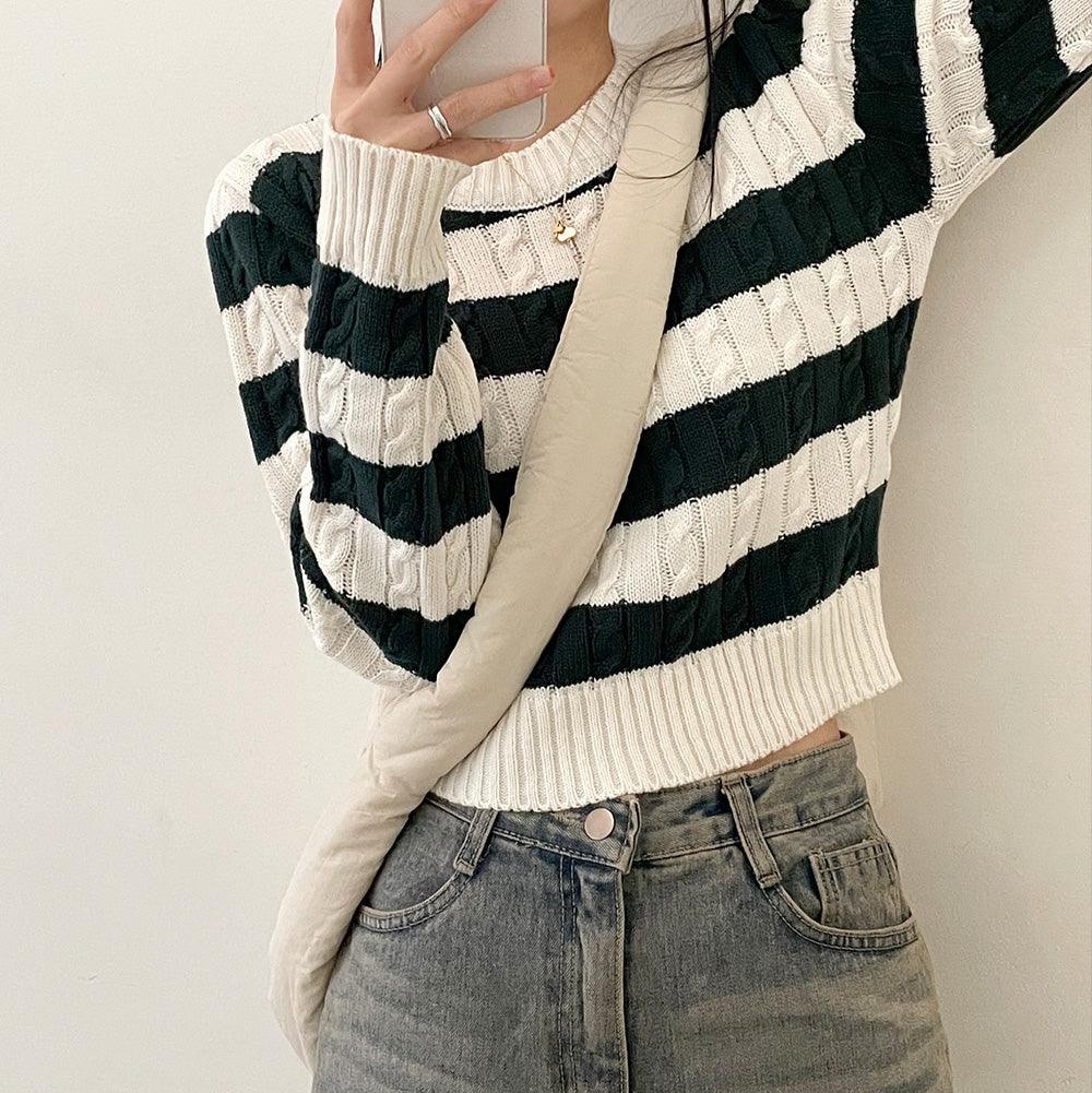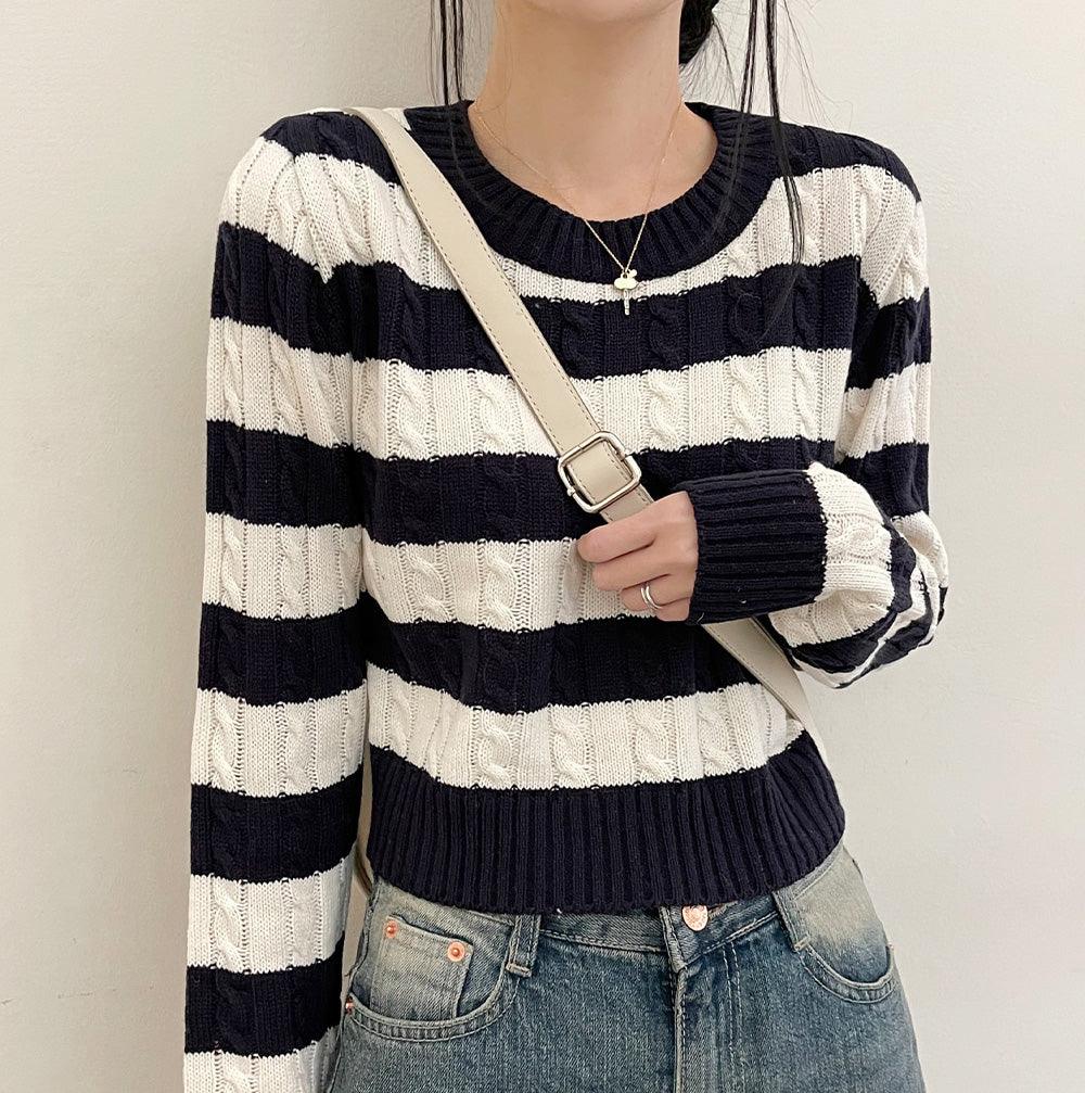 【現貨粉】韓製撞色條紋麻花針織衫(5color)<KR>