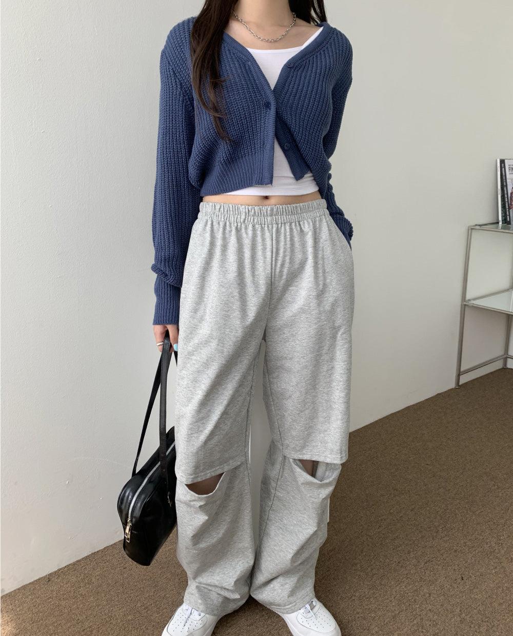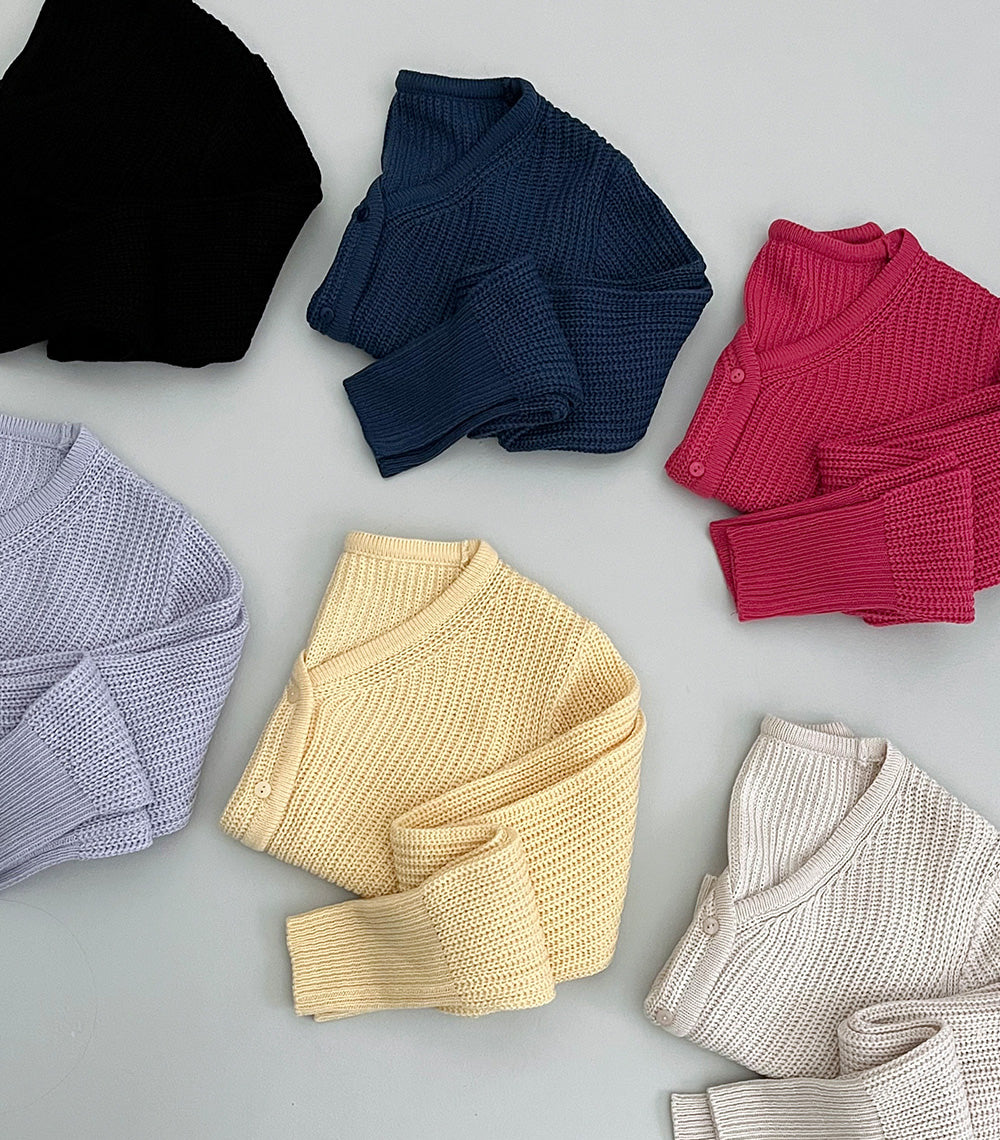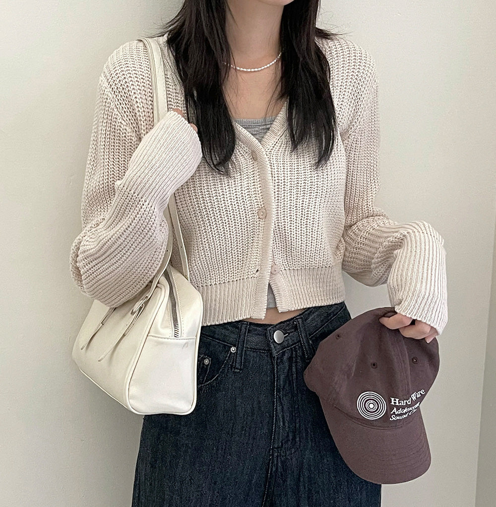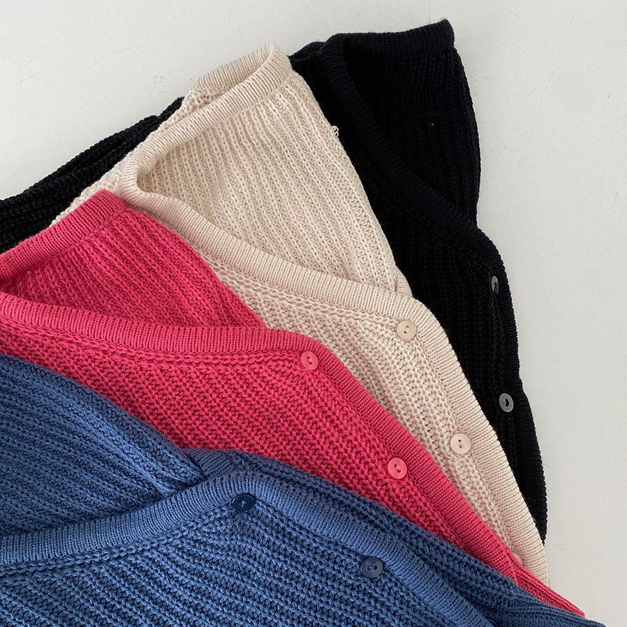 韓製淨色短款針織開衫<KR>