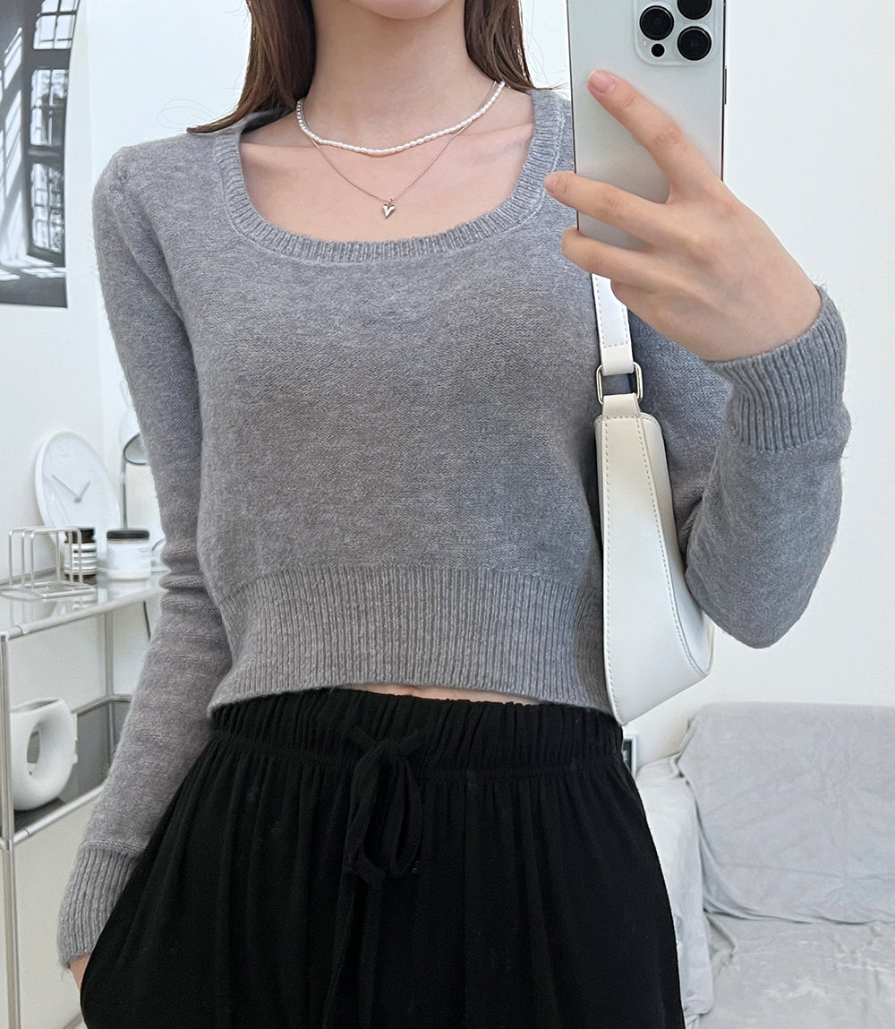 【-3kg/顯瘦】修身方領短款針織衫(4color)