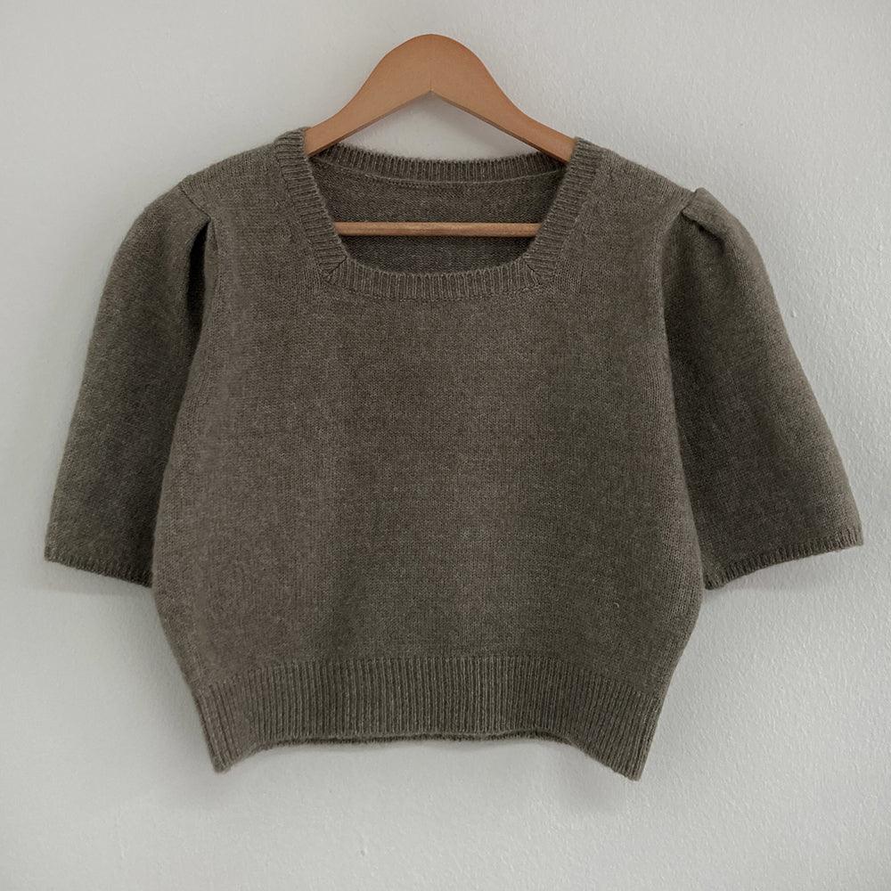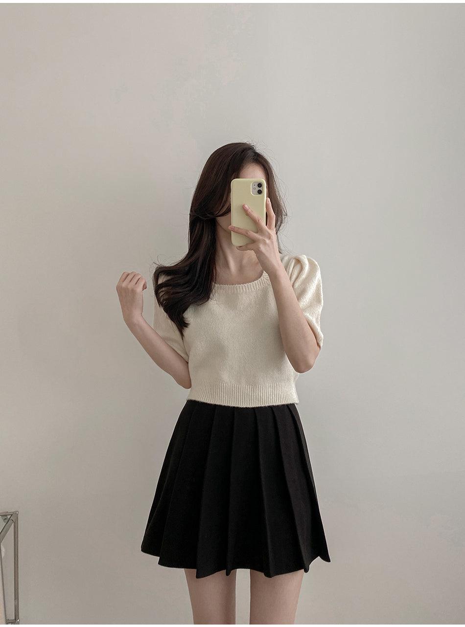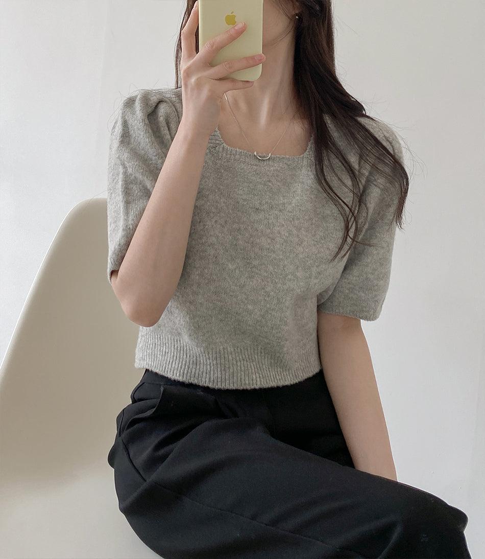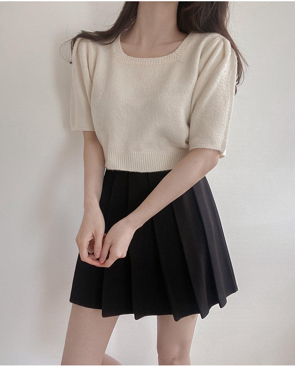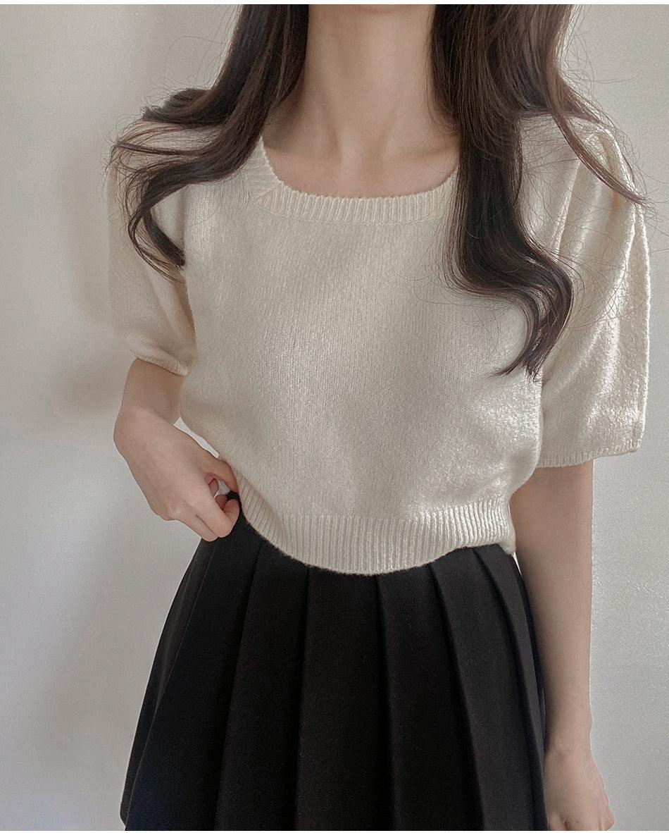 【現貨杏/氣質!】韓製混色感方領微泡袖針T