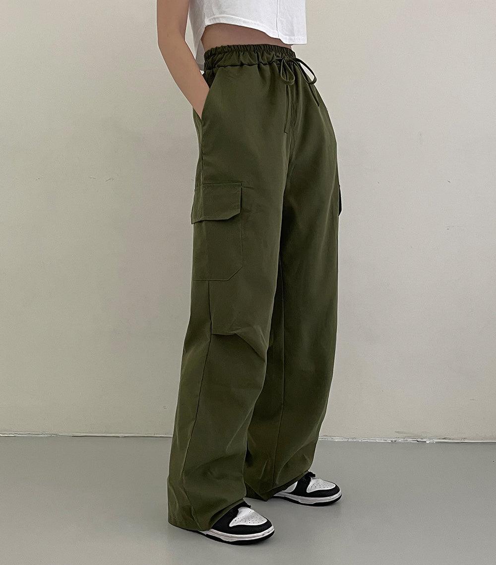 【現貨杏/四季可穿!】時尚工裝口袋鬆緊腰綁帶褲