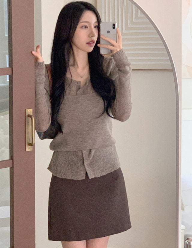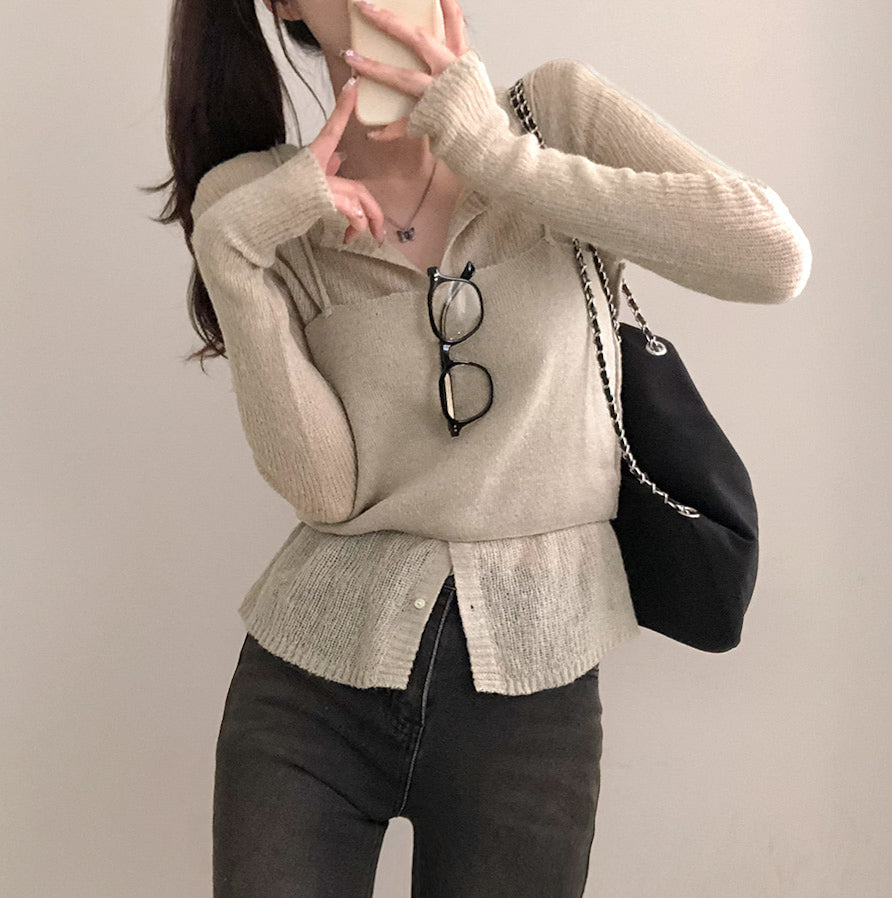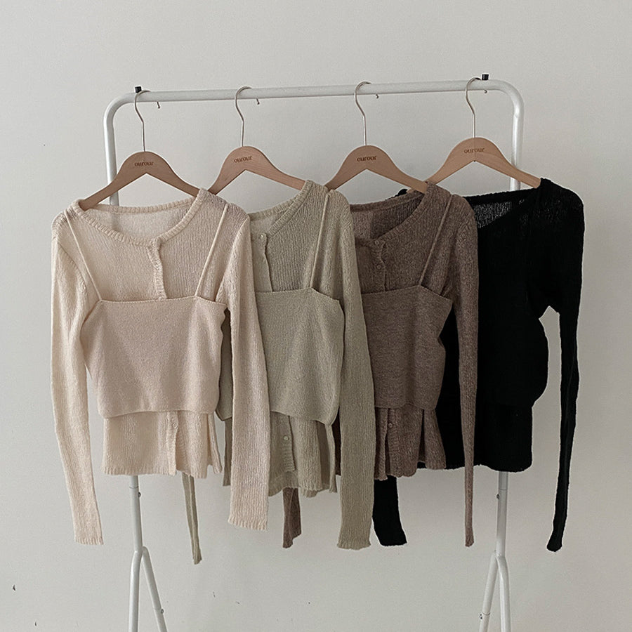 ✨秋日必備!兩件套針織背心+開衫套裝✨