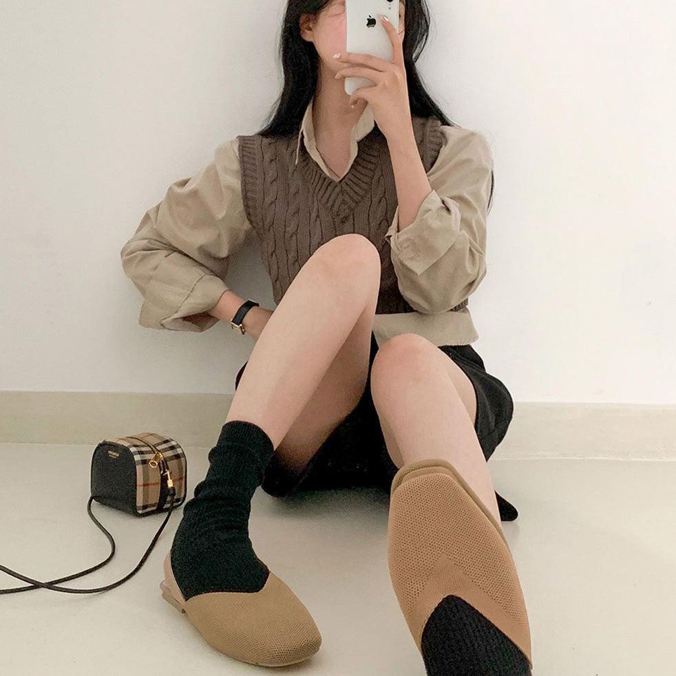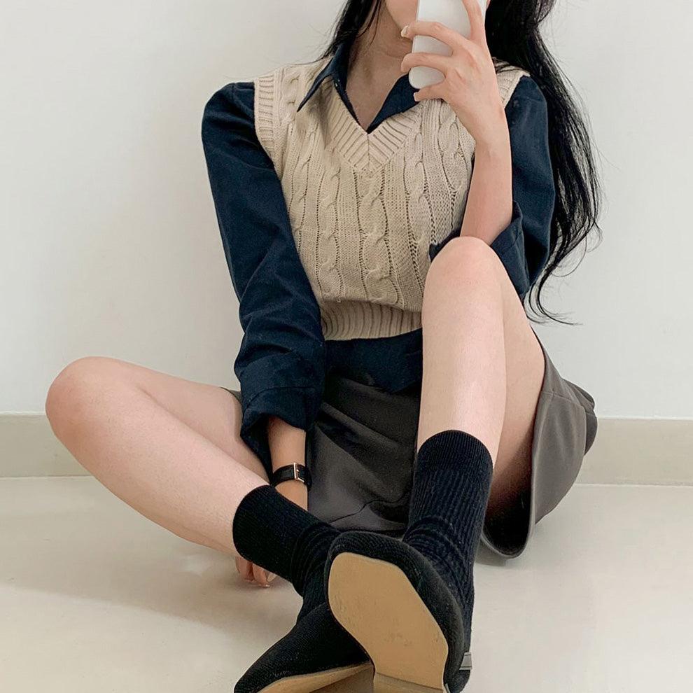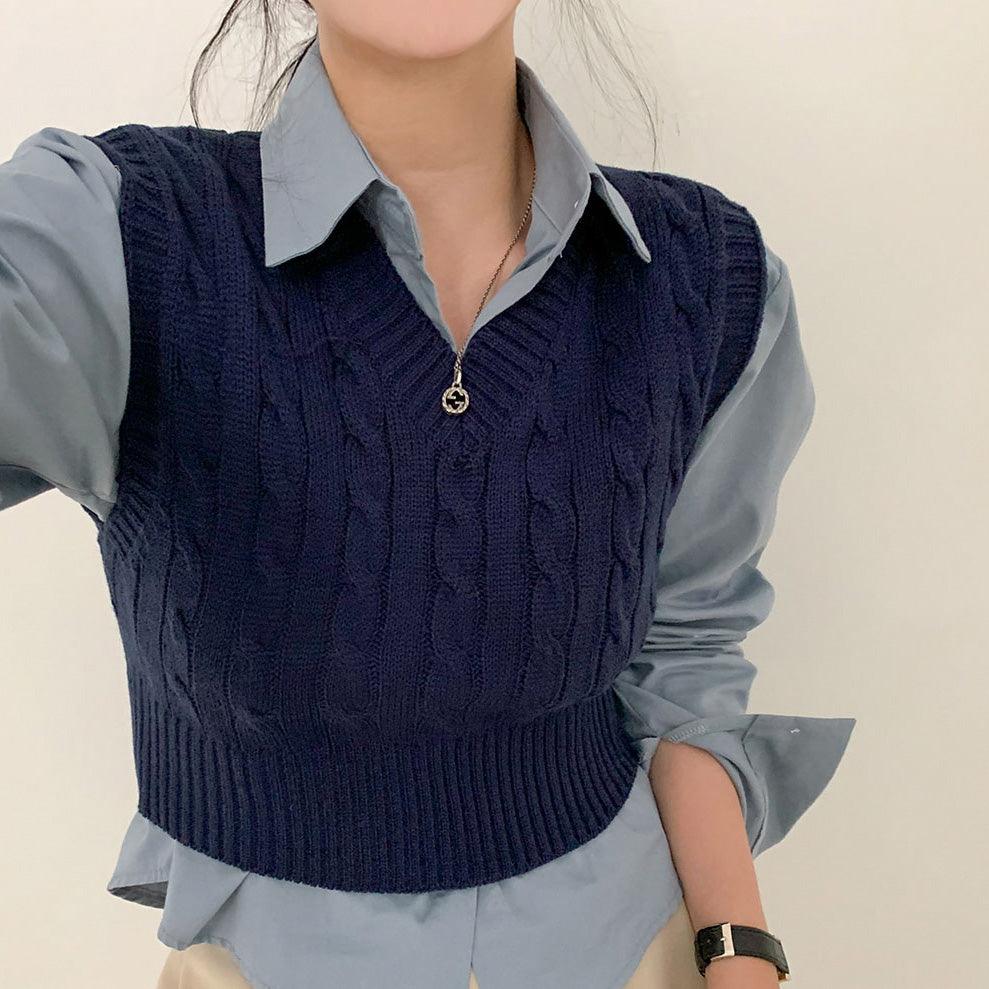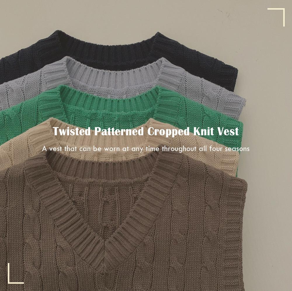 【現貨cocoa】韓製V領麻花短款針織背心<KR>