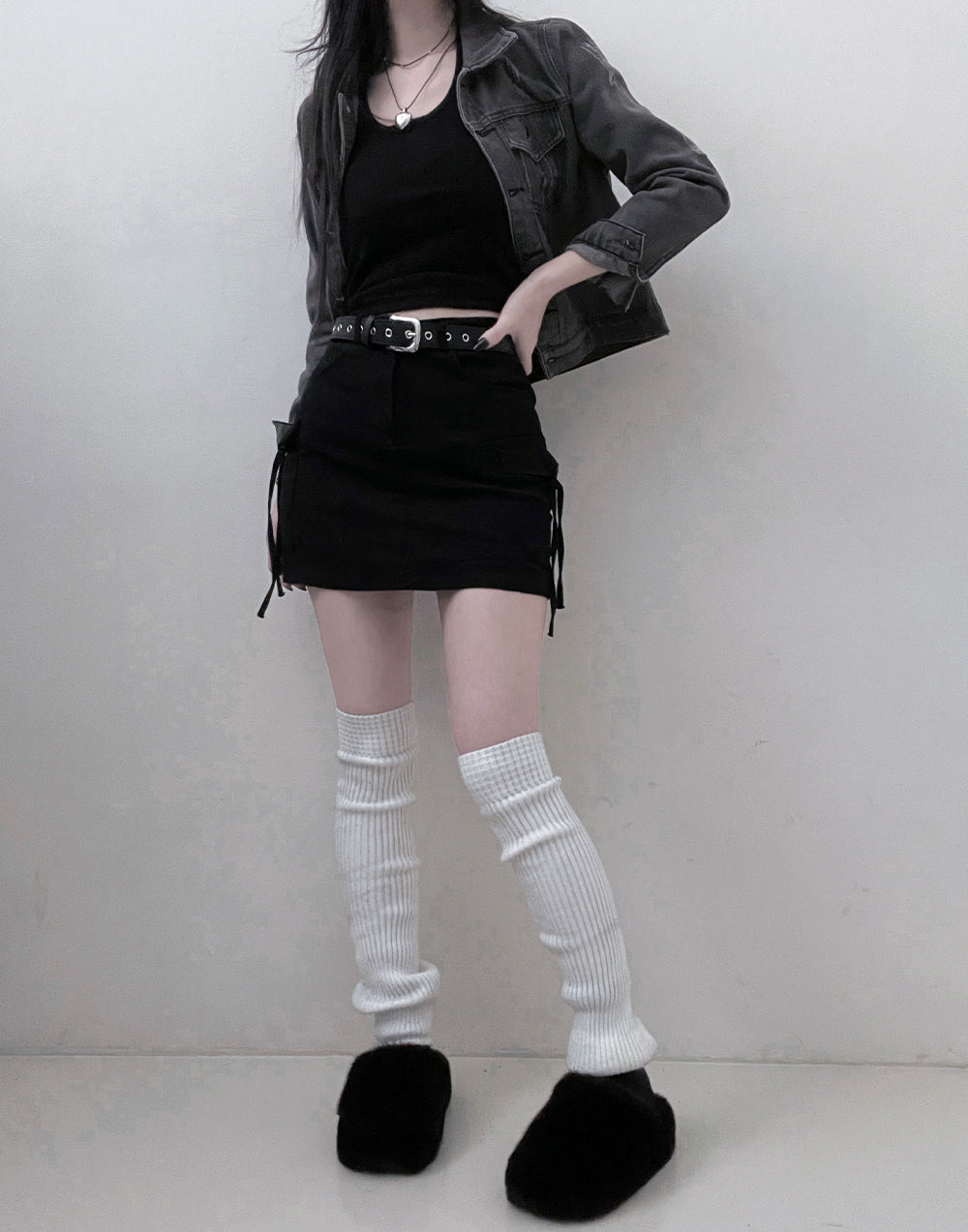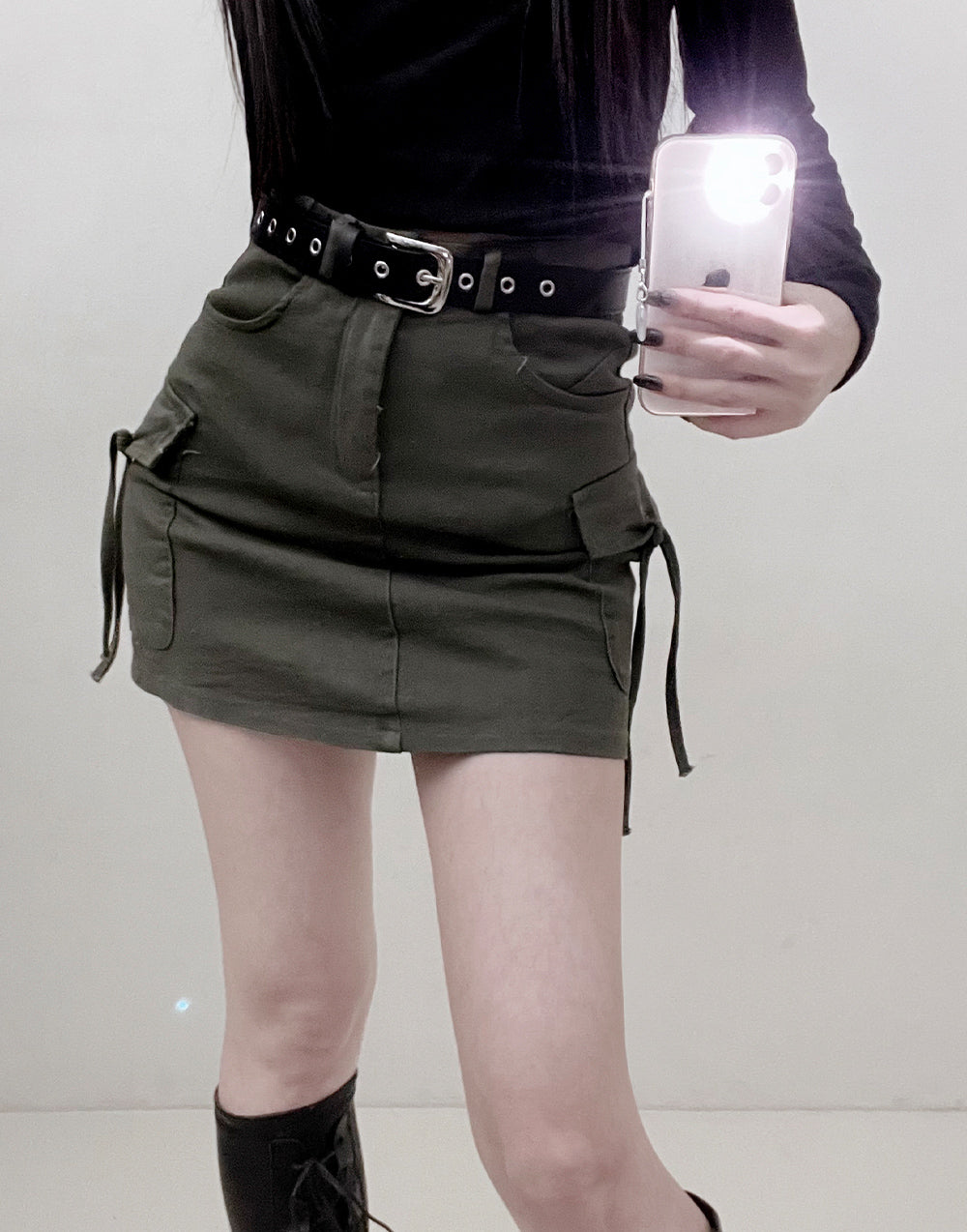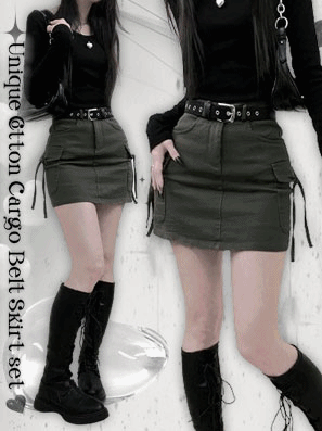 腰帶工裝飄帶短裙(S-L)