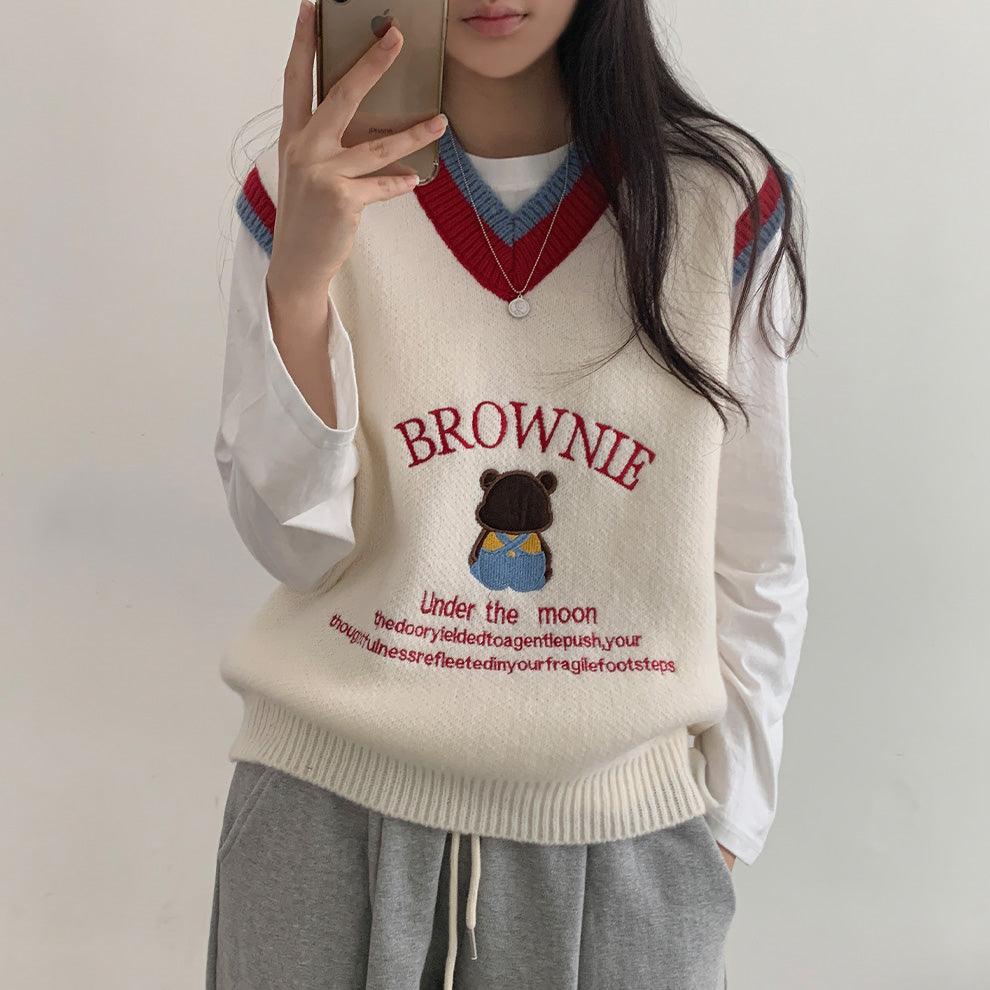 【現貨】🐻Brownie小熊刺繡刻字V領針織背心