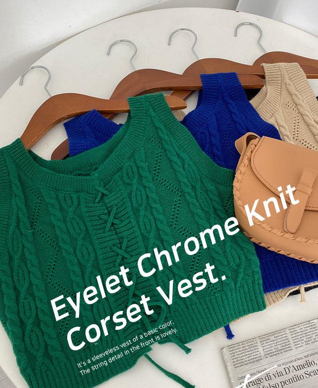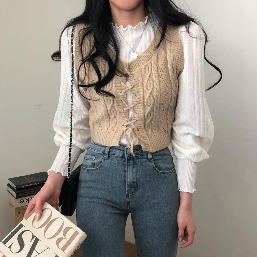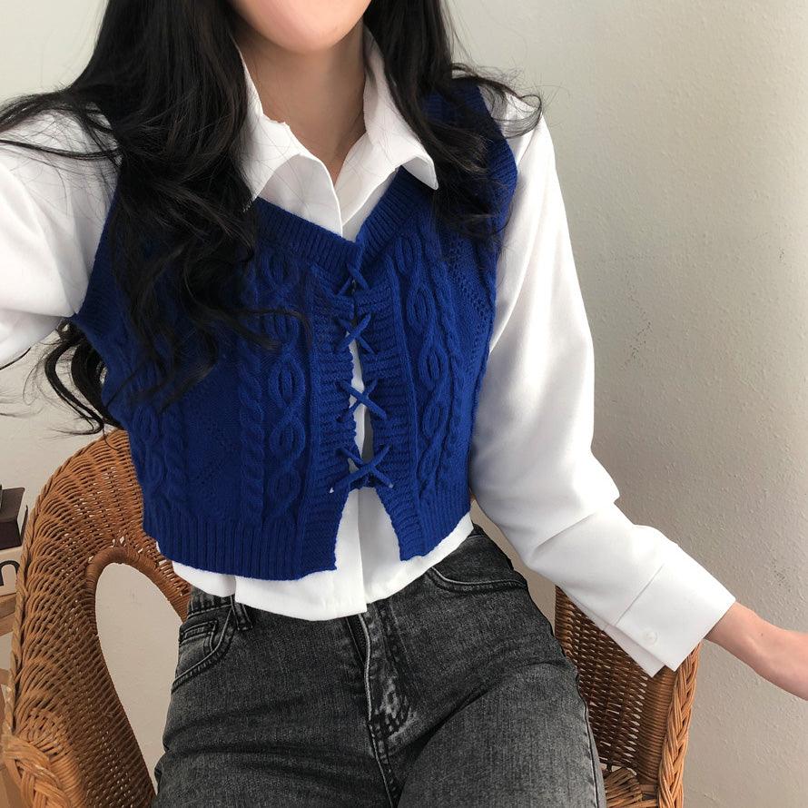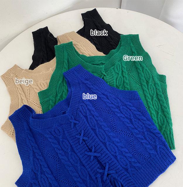 交叉孔眼綁帶短款針織背心
