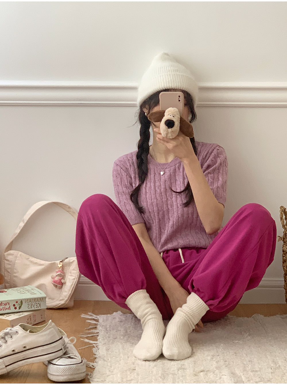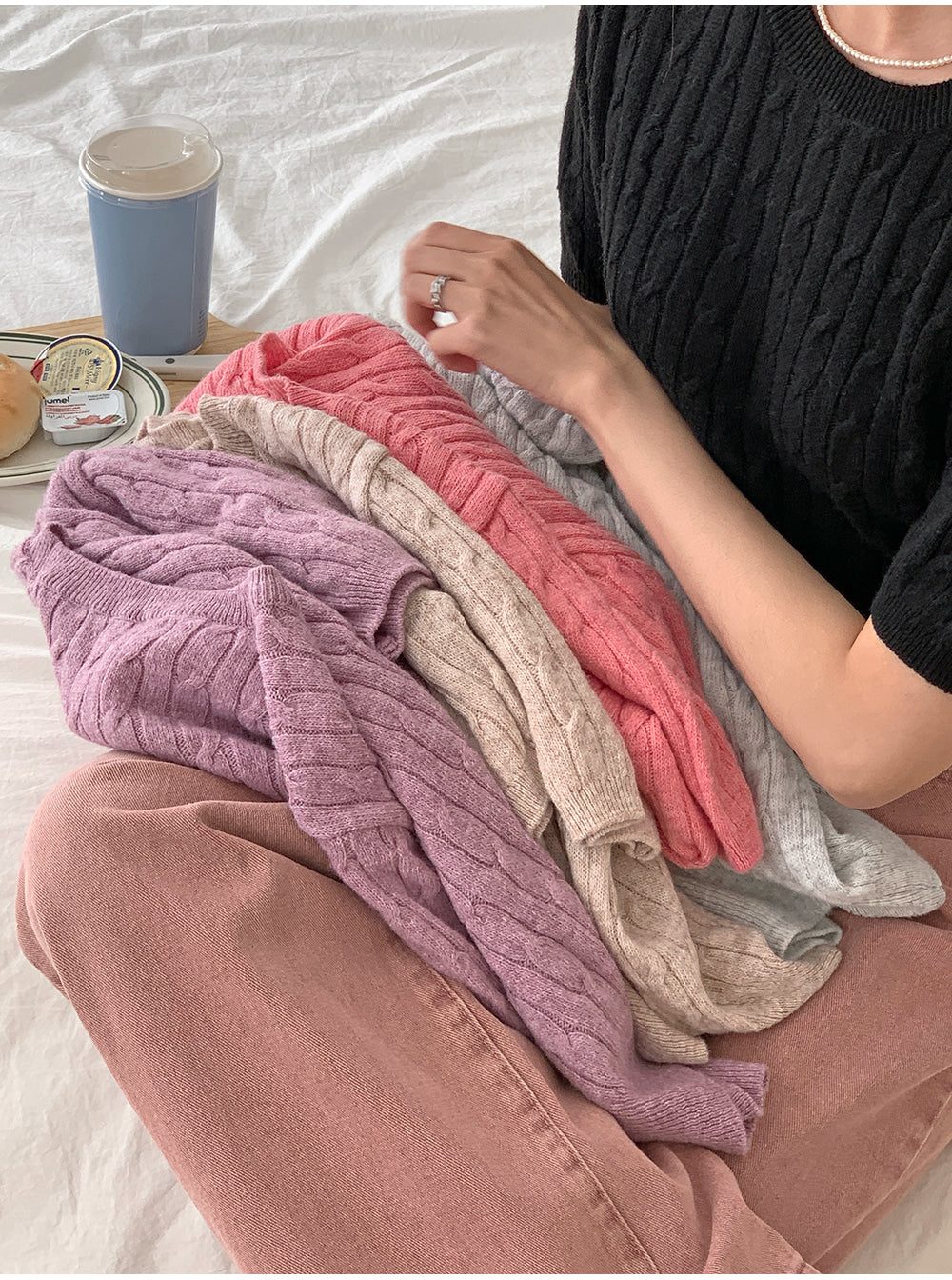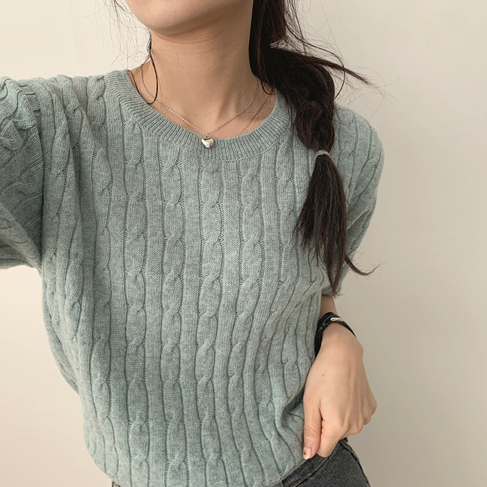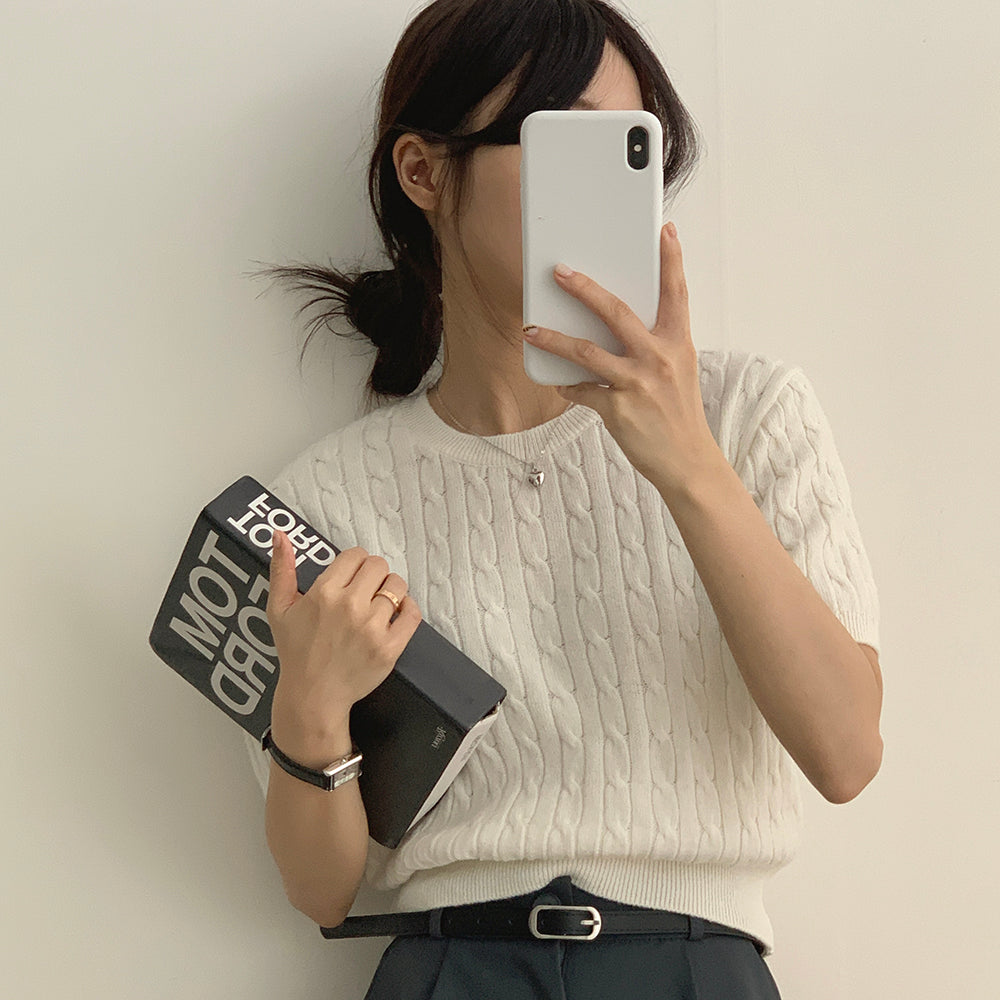 【現貨淺灰】🐑羊毛高質圓領麻花短袖針織衫