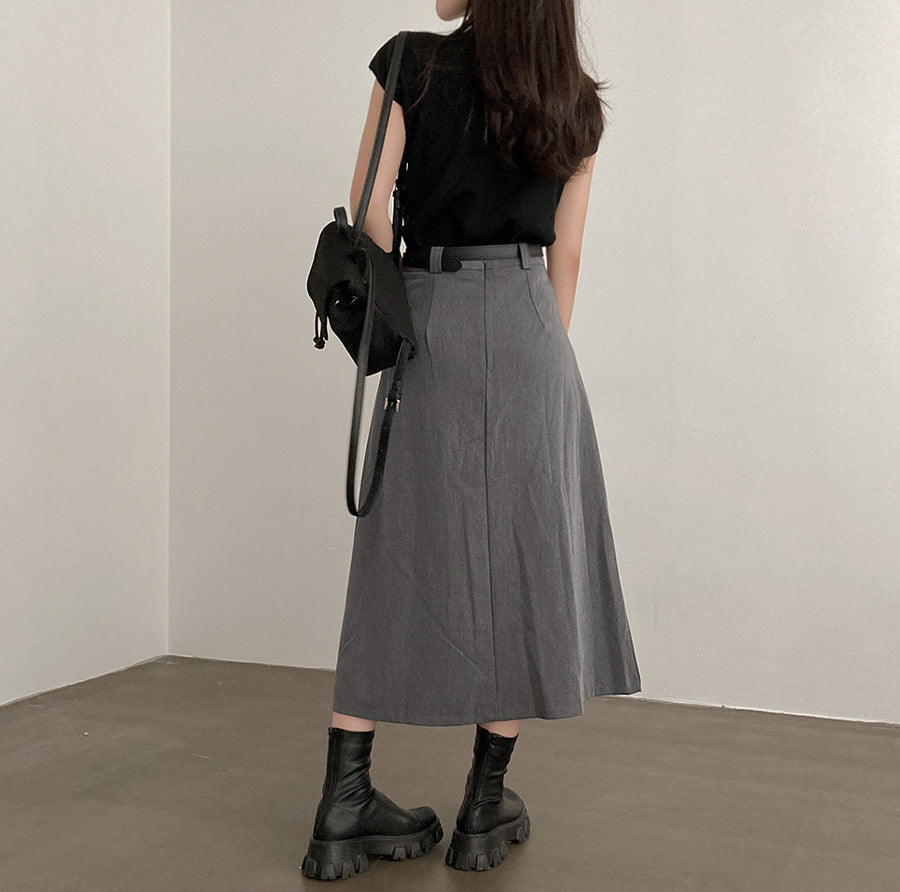 【現貨灰】🥨春季腰帶百褶半身長裙