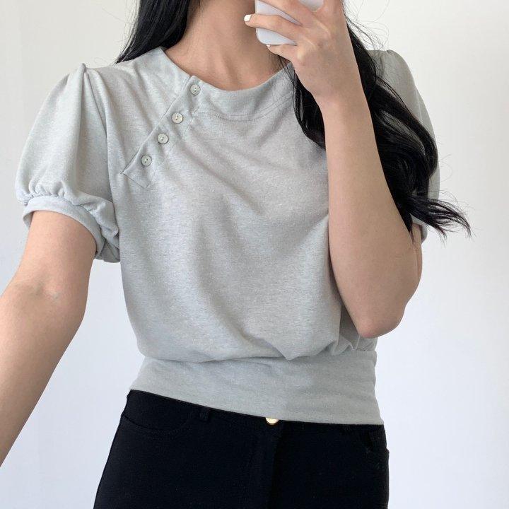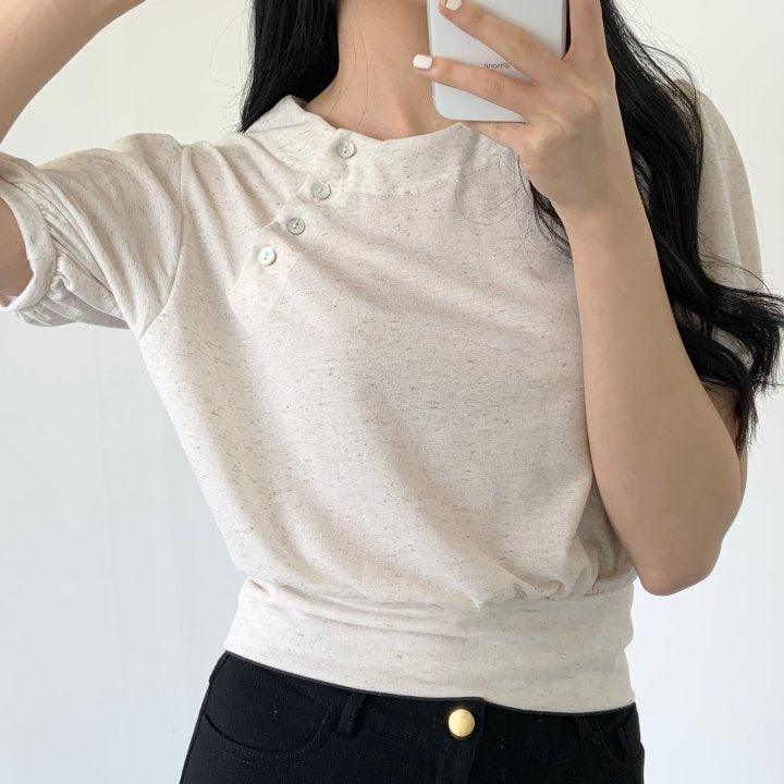 【現貨Oatmeal】輕盈麻料斜鈕T恤<KR>