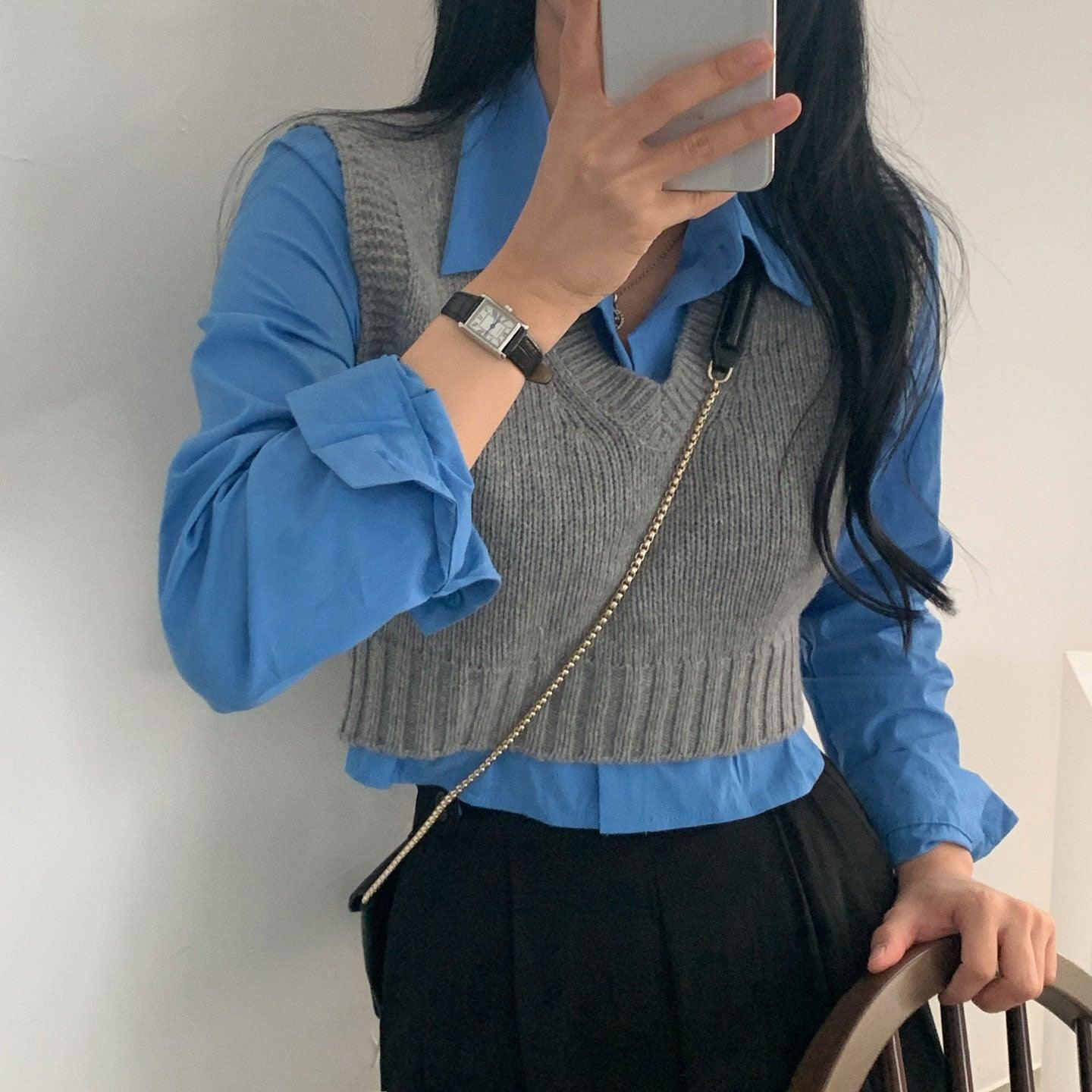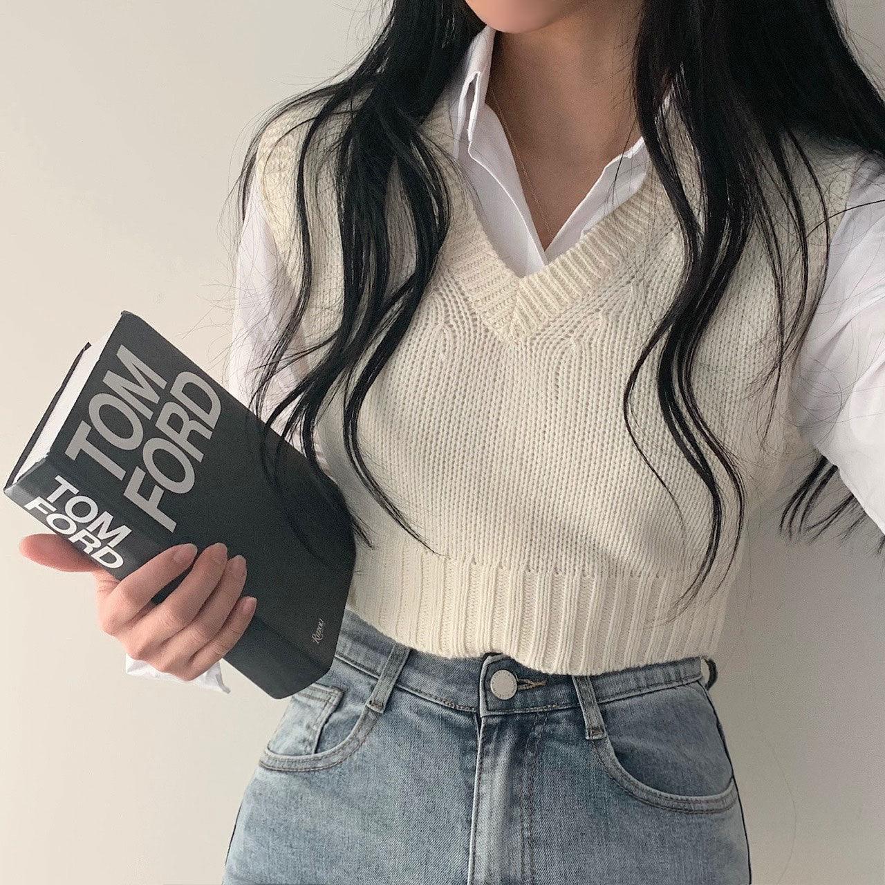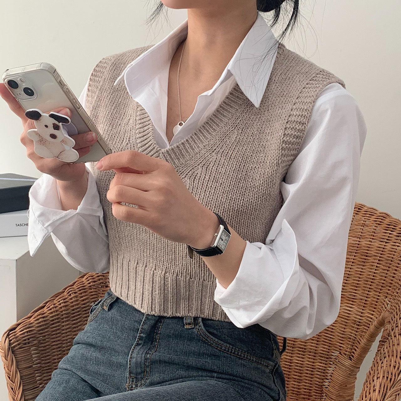 【春季新款/10色】韓製V領短款針織背心