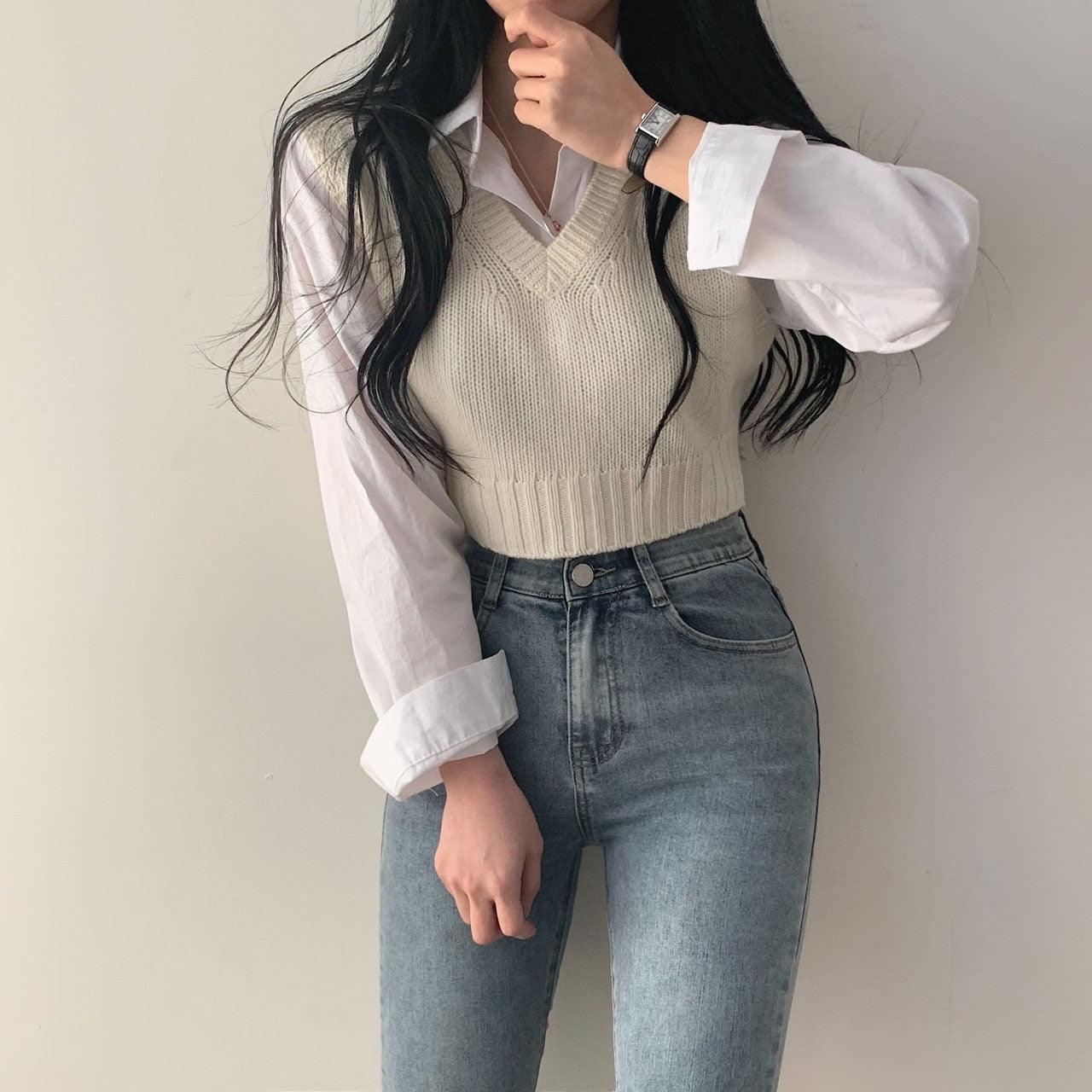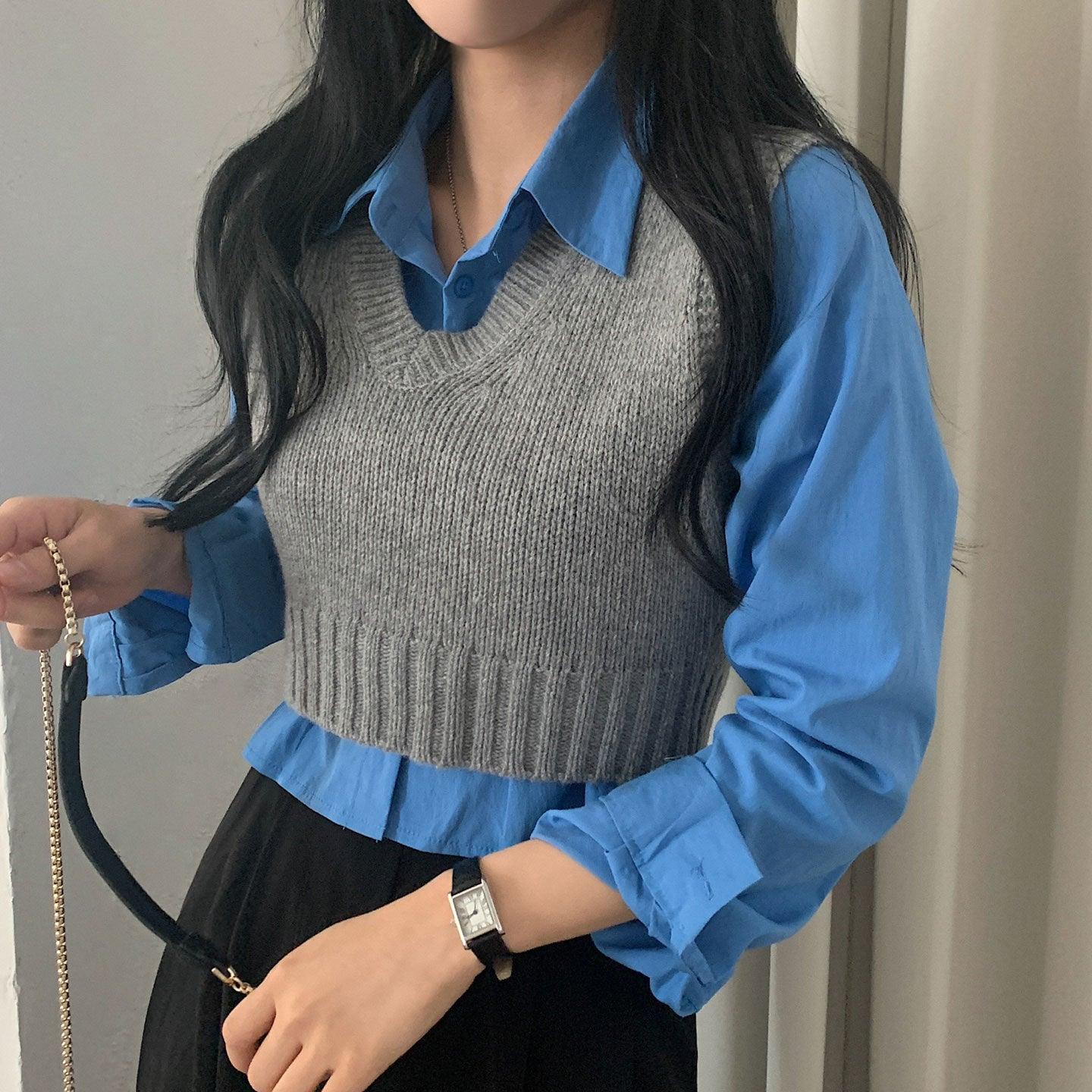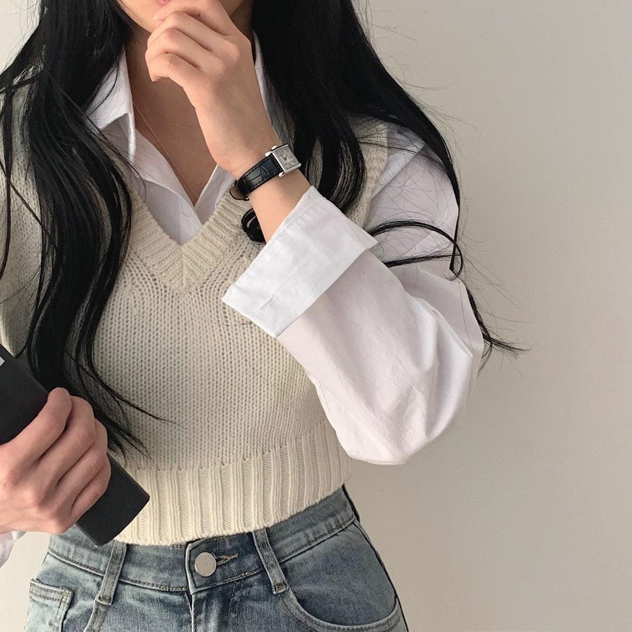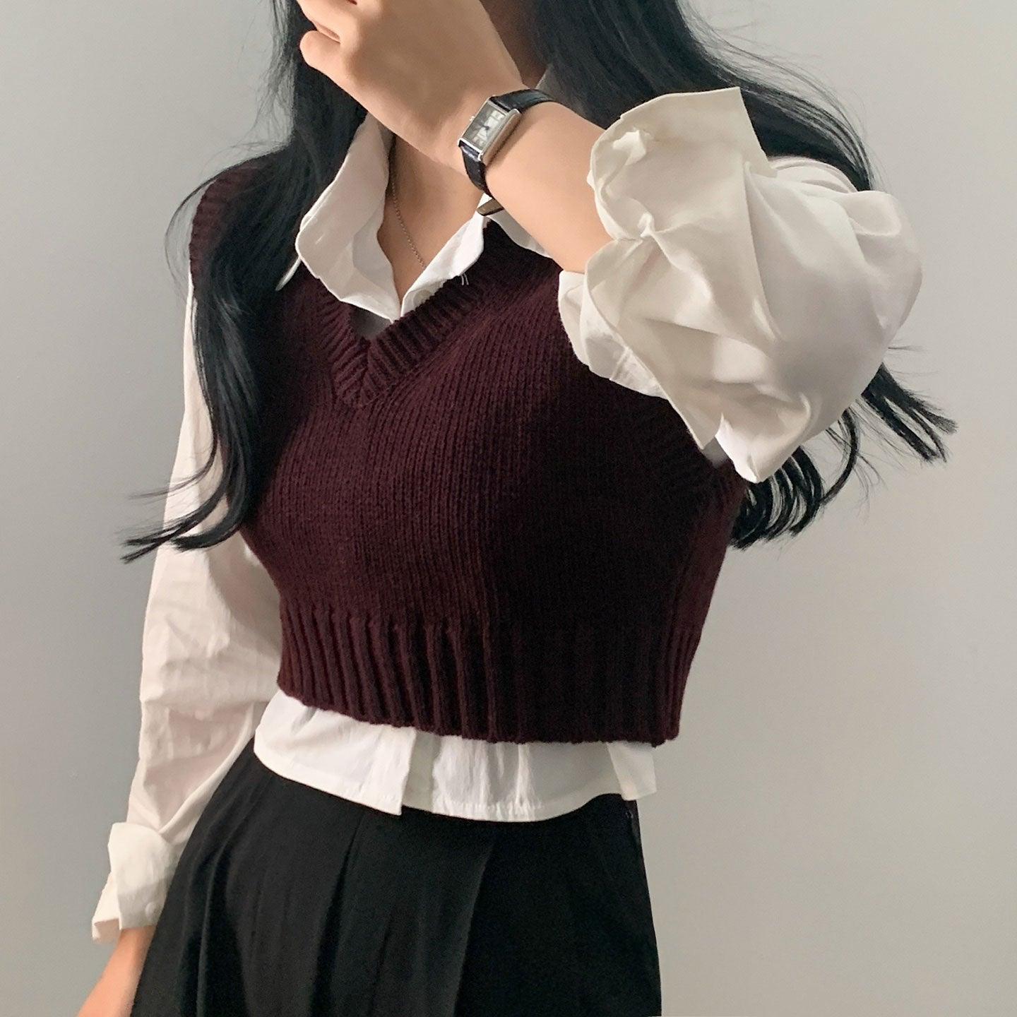 【春季新款/10色】韓製V領短款針織背心