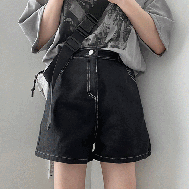 【現貨奶M/黑M】明線牛仔短褲🪡後橡筋腰 (S-L)